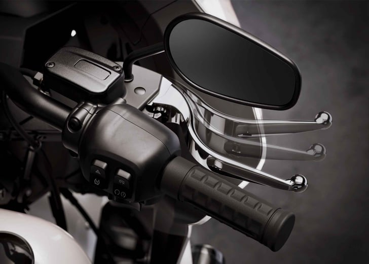 A 102 mm analog speedo with a built-in digital display puts essential ride data front and center. Three selectable Ride Modes (Road, Rain, and Sport) let you change the bike’s behavior to match how and where you ride.